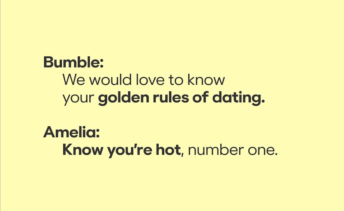 Amelia, famous for her hilariously awkward celebrity interviews and viral red-carpet moments, is bringing her charm to Bumble with a series of videos packed with dating “Golden Rules,” “Ins and Outs,” and her signature “Flirty Firsts.” This campaign marks Bumble’s boldest move yet in merging dating with culture. Fresh, fun, and unapologetically real, it’s a perfect showcase of Amelia’s unique approach to owning the dating scene.