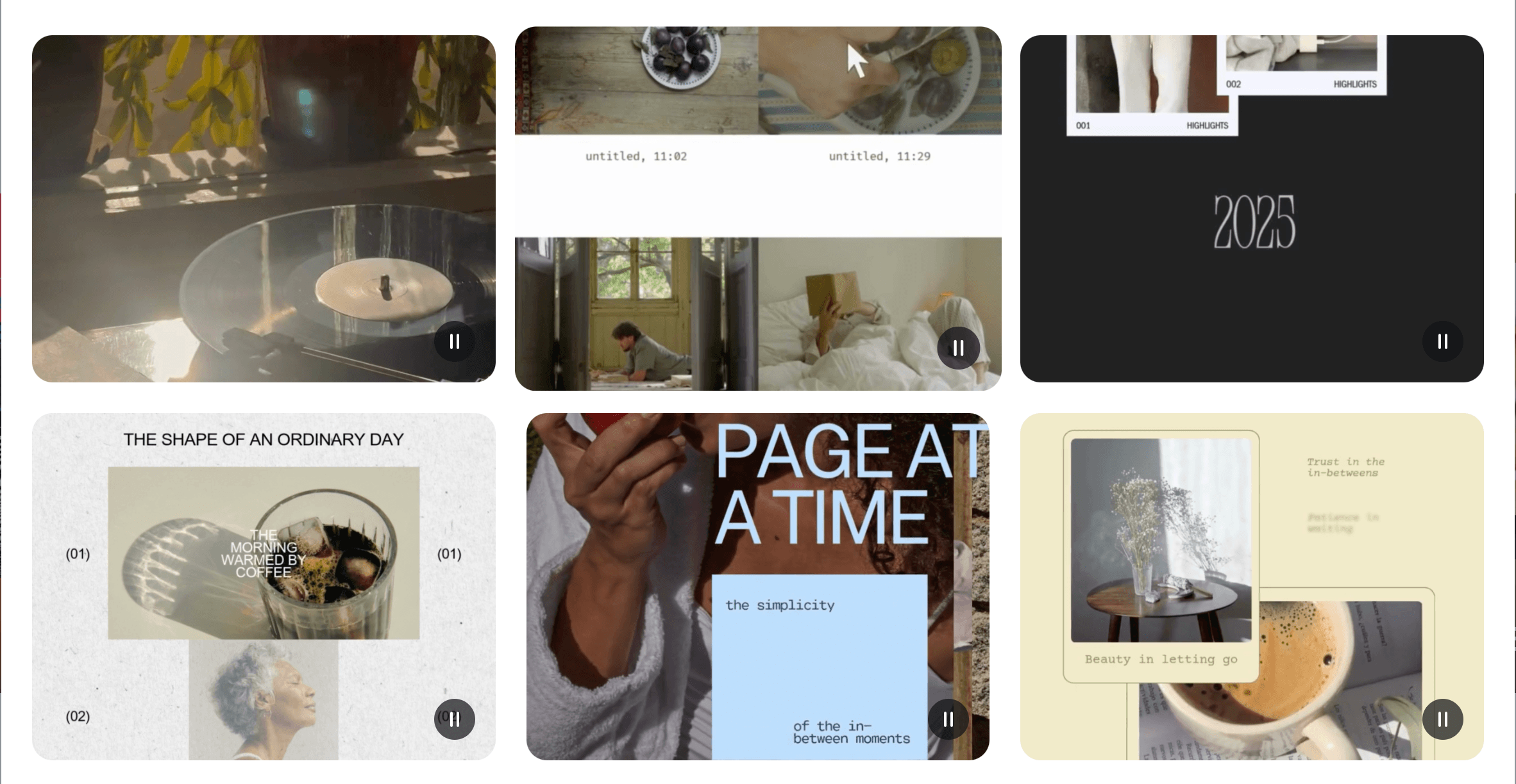 With simple layouts, subtle interactive touches and clean serif fonts, this style creates space instead of noise. It works well for presentations, videos, or social posts that invite viewers to slow down and explore at their own pace.
